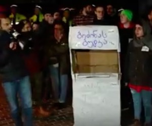 ბიძინა ივანიშვილის ბიზნესცენტრთან აქტივისტებმა ნაგვის ურნა მიიტანეს