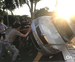 აქციის მონაწილეები პარლამენტის შენობისკენ გაემართნენ და გზად მანქანა ამოატრიალეს