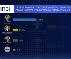 GORBI: თბილისის მერის არჩევნები ამ კვირას რომ ტარდებოდეს, კახა კალაძეს ხმას აძლევს გამოკითხულთა 66,5%, ირაკლი კუპრაძეს — 13,5%