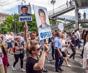 მორიგი მრავალათასიანი აქცია ხაბაროვსკში — მოქალაქეები დაკავებულ გუბერნატორს მხარდაჭერას უცხადებენ