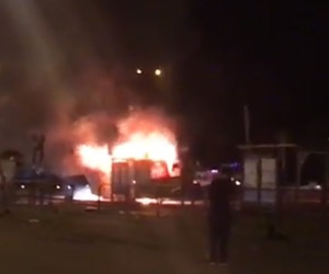 სადგურის მოედანზე ყვითელი ავტობუსი დაიწვა