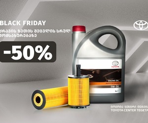 50%-იანი ფასდაკლება ძრავის ზეთის შეცვლის სრულ სერვისზე — Black Friday ტოიოტა ცენტრი თეგეტაში