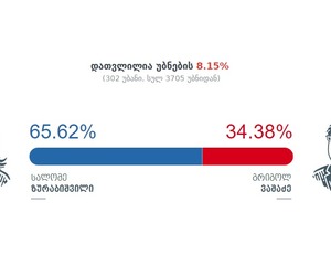 დათვლილია ხმების 31%: ზურაბიშვილი — 57,37%, ვაშაძე — 42,63%