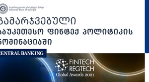 საქართველოს ეროვნულმა ბანკმა Central Banking-ის საუკეთესო ფინტექ პოლიტიკის ნომინაციაში გაიმარჯვა