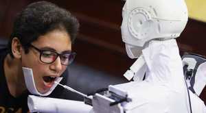 ჰუმანოიდი რობოტი, რომელიც ეგვიპტეში კორონავირუსის ტესტებს ატარებს