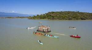 წყალდიდობის გამო, ჟირაფი ნიანგებით სავსე მდინარეზე გადაყავთ — ვიდეო