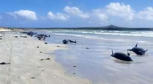 წყნარი ოკეანის სანაპიროზე 100-მდე შავი დელფინი გამოირიყა და დაიღუპა