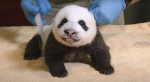 აშშ-ს ზოოპარკში 2 თვის პანდა ნელ-ნელა უფრო ბაჯბაჯა და ფუმფულა ხდება