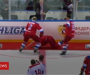 ვლადიმერ პუტინმა ჰოკეი ითამაშა და გამარჯვების აღნიშვნის დროს წაიქცა