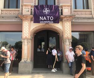 პატრიოტთა ალიანსის აქციის პარალელურად საკრებულოდან ბანერი "ნატო აქაურობას" გადმოფინეს