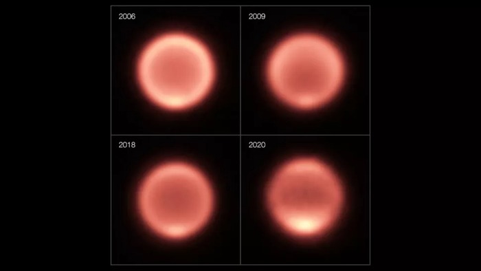 სპეციალისტებმა ნეპტუნის ინფრაწითელი გამოსხივება სხვადასხვა ტელესკოპის მეშვეობით შეისწავლეს. აღსანიშნავია, რომ გაციების ტენდენცია უნივერსალური არ ყოფილა, რადგან 2018-დან 2020 წლამდე პერიოდში პლანეტის სამხრეთ პოლუსის მიმდებარედ 11°C-ით დათბა, რაც აქამდე არასდროს დაფიქსირებულა.