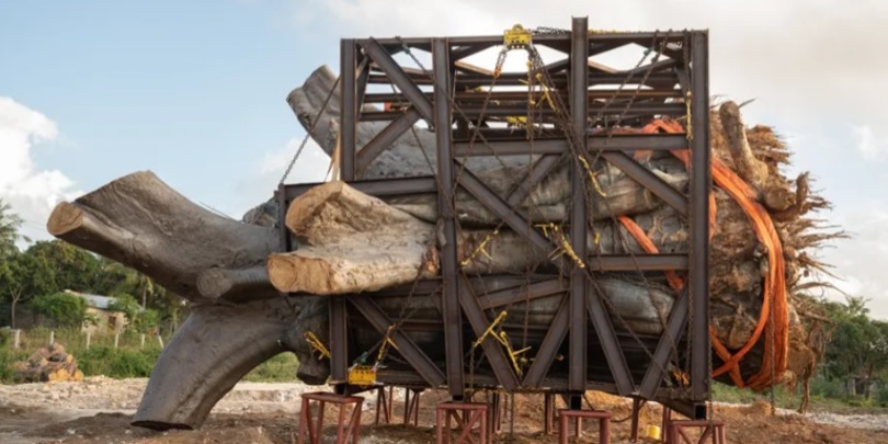 - მის გადასატანად ბობოყვათის სანაპიროზე გაკეთდა სპეციალური გზა და მისადგომი, რომლითაც სატვირთომ ხე პლატფორმაზე განათავსა.