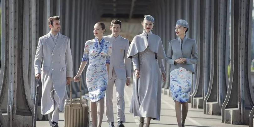 სტიუარდების უნიფორმების დიზაინი ტრადიციული ჩინური კაბებითაა შთაგონებული, თუმცა ჩინური ხელოვნების ელემენტებით მოხატულ სამოსში, დასავლური სტილის მოდის ტენდენციებსაც შენიშნავთ.