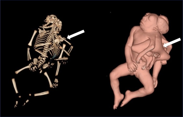 ეს საკმაოდ იშვიათი მოვლენაა. მსგავსი რამ მაშინ ხდება, როდესაც ტყუპი ემბრიონებიდან ერთ-ერთი განვითარებას წყვეტს, მაგრამ მეორე, გადარჩენილ ჩანასახს ეკვრის. უკანასკნელ შემთხვევაში, პარაზიტული ტყუპისცალის სხეულის ნაწილები საერთო ჯამში დაახლოებით 15 კილოგრამს იწონიდა.