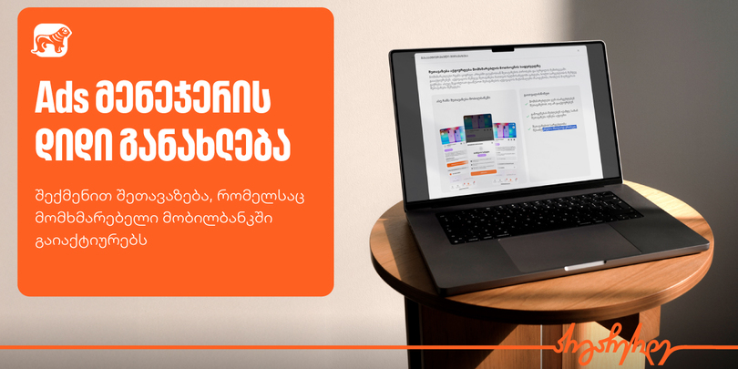 საქართველოს ბანკის Ads მენეჯერს მობილბანკით გასააქტიურებელი შეთავაზების ფუნქციონალი დაემატა