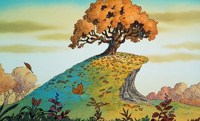 "შემოდგომის პირველი დღეა! დილაობით ცხელი შოკოლადის მირთმევის, საღამოობით კი შემწვარი ზეფირით პირის ჩატკბარუნების დროც დამდგარა! და რაც ყველაზე მეტად მახარებს, ფოთლებში გადაშვების დროა!", — აღტაცებული ვინი პუჰი ასე ეგებება წლის ყველაზე ფერად სეზონს, როცა ახალგაღვიძებულს ღია ფანჯრიდან საწოლზე შემოცვენილი ყვითელი ფოთლების გროვა ხვდება...