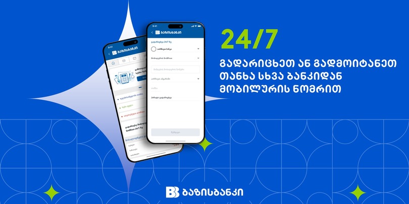 მომენტალური გადარიცხვები მობილურის ნომრით 24/7-ზე, მიიღეთ ახალი შესაძლებლობა ბაზისბანკის მობაილ ბანკში