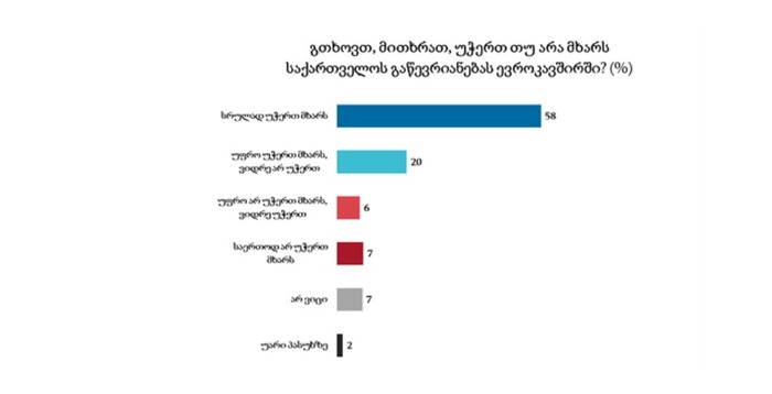 CRRC-საქართველოს კვლევით, ევროკავშირის წევრობას გამოკითხულთა 78% ემხრობა. ახალგაზრდებში (18-34) საქართველოს ევროკავშირში გაწევრიანების მხარდაჭერის მაჩვენებელი კიდევ უფრო მაღალია — 86%. უფროს ასაკობრივ ჯგუფებში მხარდაჭერის მაჩვენებლები მცირედით იკლებს, თუმცა, ევროკავშირში გაწევრიანებას მაინც დიდი უმრავლესობა უჭერს მხარს: 35-54 წლის კატეგორიაში 76%, ხოლო 55+ ასაკობრივ ჯგუფში — 71%. სქესის მიხედვით განსხვავება პრაქტიკულად არ ფიქსირდება, თუმცა, დედაქალაქის მოსახლეობაში მხარდაჭერა უფრო მაღალია, ვიდრე რეგიონებში.