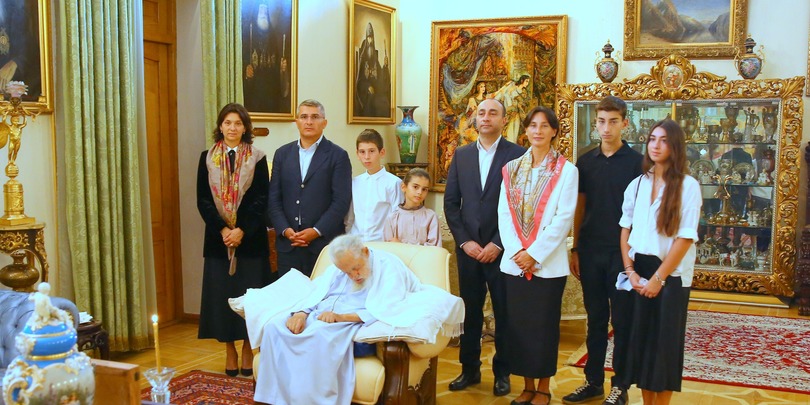 სუს-ის ახალი ხელმძღვანელი, მამუკა მდინარაძე და ოცნების ხელისუფლების შს მინისტრი, გეკა გელაძე ოჯახებით ილია II-ს ესტუმრნენ.
