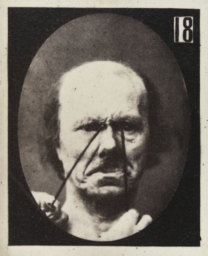 1862 წელს, ფრანგმა ნევროპათოლოგმა გიიომ დიუშენმა ექსპერიმენტი ჩაატარა: იმის გასაგებად, თუ სახის რომელ კუნთებს ვიყენებთ ამა თუ იმ გამომეტყველების მისაღებად, მცირეოდენი ელექტრობით მათი სტიმულირება სცადა. ასე შეიტყო, რომელი კუნთები გამოიყენება, მაგალითად, ღიმილისთვის, მოღუშვისთვის, ტირილისთვის და სხვა.