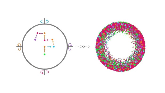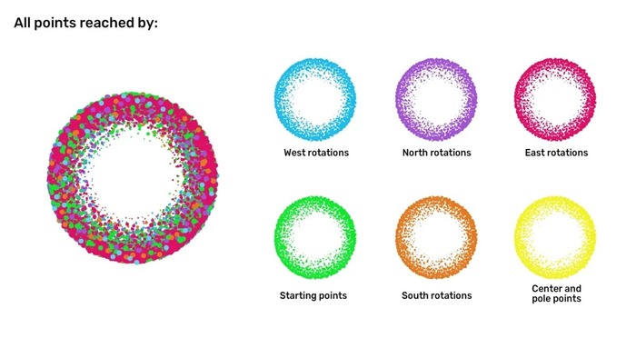 ავიღოთ ერთ-ერთი სიმრავლე, მაგალითად, ყველა იმ წერტილის ერთობლიობა, რომლის ბოლო დატრიალება ჩრდილოეთით იყო. შემდეგ ბოლო დატრიალება შევცვალოთ: ჩრდილოეთის ნაცვლად სამხრეთით იყოს. თუ ბოლო დატრიალებას უგულებელვყოფთ, წერტილებს სხვადასხვა საბოლოო მიმართულება ექნება: ზოგს აღმოსავლეთით, ზოგს დასავლეთით, ზოგსაც ისევ ჩრდილოეთით.