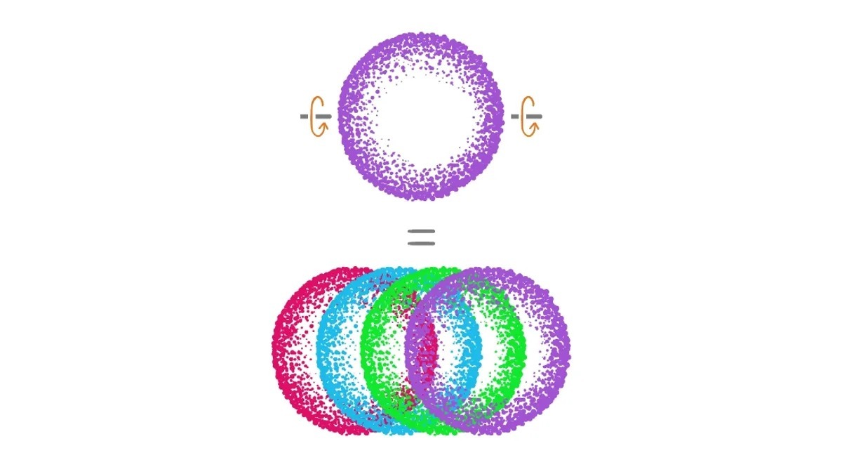 ავიღოთ ერთ-ერთი სიმრავლე, მაგალითად, ჩრდილოეთით დატრიალების შედეგად მიღებული ყველა წერტილის ერთობლიობა. ბოლო ნაბიჯი შევაბრუნოთ — ჩრდილოეთის ნაცვლად სფერო სამხრეთით დავატრიალოთ.