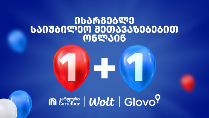 1+1 აქციის ფარგლებში შერჩეული პროდუქტები, დამატებით შეთავაზებებთან ერთად, ხელმისაწვდომია Glovo-სა და Wolt-ის აპლიკაციებში, რაც მომხმარებლებს საშუალებას აძლევს ონლაინ შოპინგი, კიდევ უფრო, სასიამოვნო გამოცდილებად იქცეს.