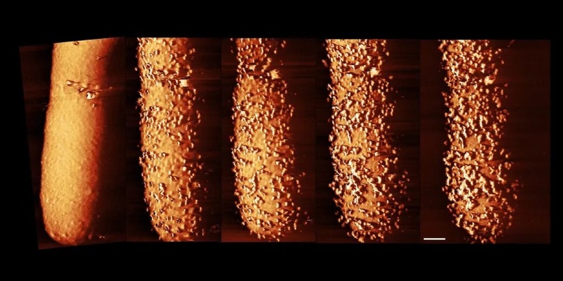 ამან ავტორებს იმის გადაღების საშუალება მისცა, თუ როგორ შეიცვალნენ მიკრობები ანტიბიოტიკის ზემოქმედების შედეგად. კადრებში ჩანს, რომ ნაწლავის ჩხირების მემბრანაზე მალევე გაჩნდა პაწაწინა ამობურცულობები, რომელთა ზრდამაც "ჯავშანი" გაარღვია. დარჩენილ ნაპრალებში ანტიბიოტიკმა შეაღწია და უჯრედები დახოცა.