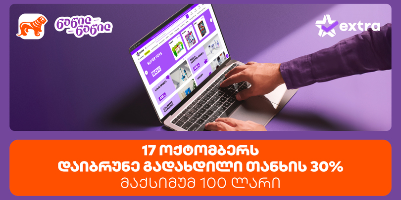 ისარგებლე პირველად საქართველოს ბანკის ნაწილ-ნაწილით და მიიღე 30% ქეშბექი extra.ge -ზე შოპინგისას