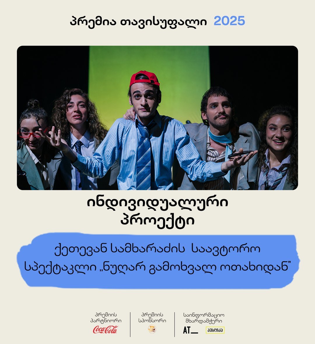 "მათ შემოქმედებითობას ადასტურებს ის, რომ დარბაზები სავსეა მაყურებლებით და ხშირად ბილეთების შოვნაც ჭირს. თუნდაც წელს, მესამე გამოშვებაზე — იმ პირობებში, სადაც რამდენიმე თვე დამოუკიდებელი თეატრები გაფიცულები იყვნენ — პრემია 17 სპექტაკლს განიხილავს", — ამბობს პრემიის დამფუძნებელი, თეა კახიანი.