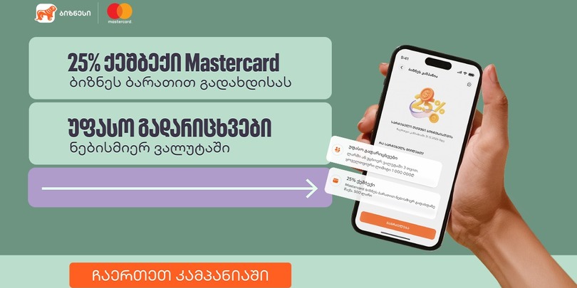 დაიბრუნეთ 25% ბიზნეს Mastercard-ით გადახდისას და ისარგებლეთ უფასო გადარიცხვებით საქართველოს ბანკისგან