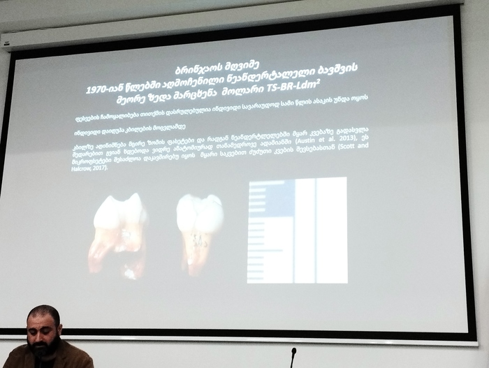 ცხადია, ასეთი მიგნებები მნიშვნელოვანია, მაგრამ უშუალოდ ნამარხების მიკვლევა ბევრად იშვიათად ხერხდება. ქართველმა მეცნიერებმა კი ეს 1970-იან წლებში შეძლეს. ქვემოთ თქვენ წინაშეა მცირეწლოვანი ნეანდერტალელის კბილი — ზედა მარცხენა მხარეს არსებული მეორე მოლარი: