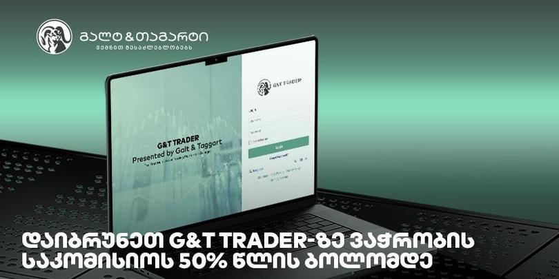 გალტ & თაგარტმა საფონდო ბირჟაზე ვაჭრობით დაინტერესებულ პირებს ახალი შეთავაზება მოუმზადა. 20 ოქტომბრიდან 2025 წლის ბოლომდე G&T Trader-ზე ვაჭრობისას მომხმარებლებს შესაძლებლობა აქვთ, ვაჭრობის საკომისიოს 50% დაიბრუნონ.
