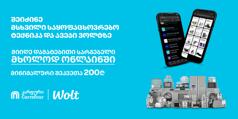 კარფურის მსხვილი ტექნიკა და ავეჯი უკვე Wolt-ზე — ონლაინ შოპინგი მარტივად, სწრაფად და საუკეთესო ფასად!
