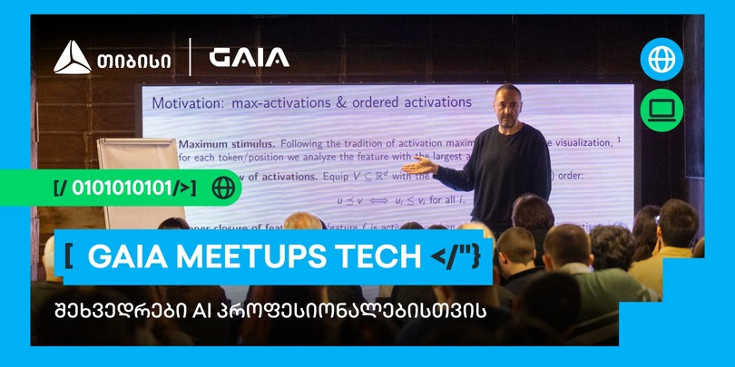 თიბისის მხარდაჭერით, საქართველოს ხელოვნური ინტელექტის ასოციაცია (GAIA), ყოველთვიური შეხვედრების სერიას GAIA Meetups აგრძელებს. 13 ნოემბერს GAIA Meetups Tech-ის მორიგი შეხვედრა ჩატარდა, რომლის სპიკერიც AI მკვლევარი ლევან ცინაძე იყო. მან მონაწილეებს საკუთარი კვლევის შედეგები გაუზიარა. კვლევა ენის მოდელების (LLMs) ახსნადობას (Explainability) და ინტერპრეტირებადობას (Interpretability) შეეხება და კომპლექსურ მათემატიკურ საკითხებს მოიცავს. პრეზენტაციის გარდა, შეხვედრის მონაწილეებს ნეთვორქინგის და იდეების, სიახლეებისა და გამოცდილების გაცვლის შესაძლებლობაც ჰქონდათ.