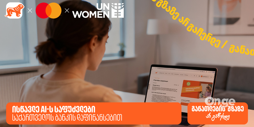 საქართველოს ბანკი, როგორც განათლების მთავარი მხარდამჭერი ბანკი, ხელოვნური ინტელექტით დაინტერესებული ქალებისთვის, პარტნიორ ორგანიზაციებთან ერთად, ახალ პროექტს ახორციელებს. ამჯერად ბანკის, მასტერქარდისა და გაეროს ქალთა ორგანიზაციის (UN Women) ერთობლივი ინიციატივის ფარგლებში AI სტიპენდია ქალებისთვის შეიქმნა.