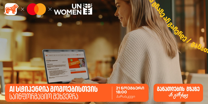 საქართველოს ბანკი, როგორც განათლების მთავარი მხარდამჭერი, პარტნიორ ორგანიზაციებთან ერთად ახალი პროექტების განხორციელებას აქტიურად განაგრძობს. ამჯერად ბანკის, მასტერქარდისა და გაეროს ქალთა ორგანიზაციის (UN Women) ერთობლივი ინიციატივის ფარგლებში, ქალებისათვის სპეციალური სასწავლო კონკურსი — AI სტიპენდია შეიქმნა.