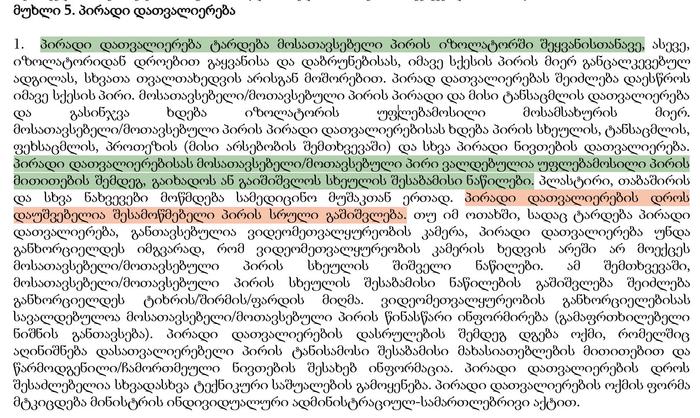 თორნიკე მიგინეიშვილი: "იზოლატორში მოთავსებისას დაკავებული პირის სრული გაშიშვლება კანონით იკრძალება"