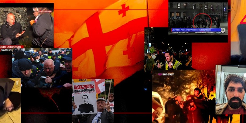 "შაბათს, 22 ნოემბერს, საღამოს, TV პირველის ჟურნალისტი, გიორგი მამნიაშვილი, რუსთაველის გამზირზე საპროტესტო აქციის გაშუქებისას გაუჩინარდა; რამდენიმე საათში პოლიციამ დაადასტურა მისი დაკავება. ადვოკატი არაადამიანურ მოპყრობაზე მიუთითებდა. მისი ინფორმაციით, ჟურნალისტი რამდენიმე საათის განმავლობაში ბორკილებით, უკან შეკრული ხელებით ჰყავდათ, არ დაარეკინეს ადვოკატთან, გარდა ამისა, გააშიშვლეს და ე.წ. ბუქნები გააკეთებინეს. ასევე, პირველივე საათებში მას ჩამოერთვა ადვოკატთან დაკავშირების უფლება. ორი კვირით ადრე, პოლიციამ ტელეკომპანია "ფორმულას" ჟურნალისტი, ლიზა ციციშვილი, იქამდე კი პლატფორმა Mediachecker.ge-ს რეპორტიორი, ნინია კაკაბაძე, დააკავეს პროტესტის გაშუქების შემდეგ. ეს დაკავებები ასახავს იმას, თუ როგორ იქცა საქართველო ქვეყნად, სადაც დამოუკიდებელი მედიასაშუალებების წინააღმდეგ ყოველთვიურად თითქმის 50 ინციდენტი ფიქსირდება", — წერია ანგარიშში.