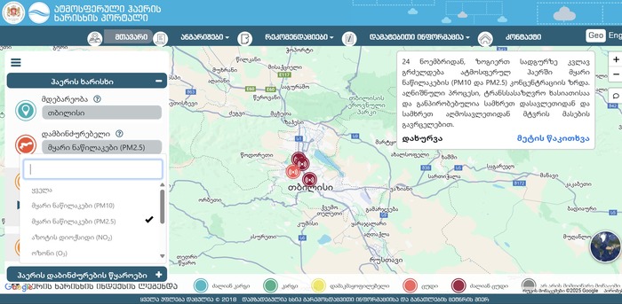 ჰაერის ხარისხის შემოწმება თავადაც შეგიძლიათ. საქართველოს მასშტაბით გარემოს ეროვნულ სააგენტოს 18 ავტომატური სადგური აქვს ამის შესაფასებლად. შედეგების გადამოწმებას მათივე სპეციალური რუკიდან შეძლებთ. ამისათვის ჯერ კონკრეტული დამაბინძურებელი ნივთიერება უნდა მონიშნოთ (მაგალითად, PM2.5); შეგიძლიათ აირჩიოთ სასურველი ქალაქიც.