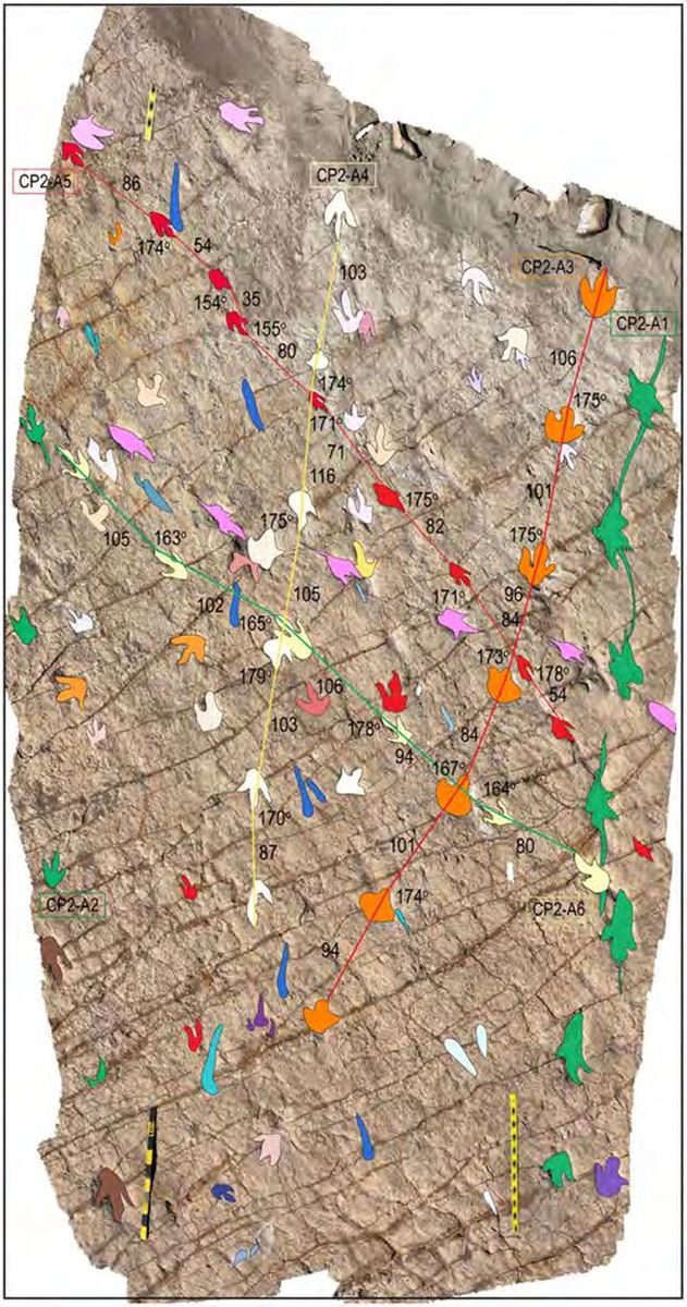 იქ პრეისტორიულ ცხოველთა 18 000-ამდე ნაკვალევია, რომლებიც მათგან არამხოლოდ სიარულისას, არამედ ცურვის დროსაც დარჩა. ეს დაახლოებით 70 მილიონი წლის წინ მოხდა, რის შემდეგაც მალევე (66 მილიონი წლის წინ) ისინი გადაშენდნენ.