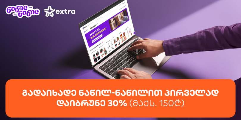 მიიღეთ 30%-იანი ქეშბექი extra.ge-ზე საქართველოს ბანკის ნაწილ-ნაწილით პირველად გადახდისას