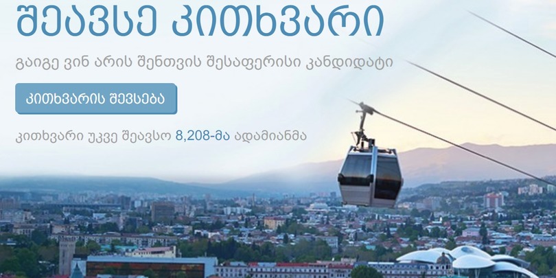 საერთაშორისო გამჭვირვალობა - საქართველო მეორე წელია ამომრჩეველს კითხვარს სთავაზობს, რაც მათ მოსაზრებებით ყველაზე ახლოს მდგომ კანდიდატის დადგენაში ეხმარება. წელს კითხვარი მხოლოდ თბილისის მერობის კანდიდატებზეა შედგენილი და სხვა თვითმმართველი ქალაქის ამომრჩეველი ვერ გაარკვევს მისი ქალაქის მერობის რომელი კანდიდატის შეხედულებაა მასთან ყველაზე ახლოს.