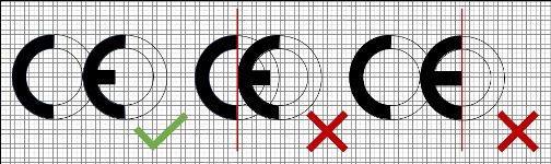 სურათზე ნაჩვენებია როგორ გავარჩიოთ ნამდვილი CE მარკირება ყალბისგან