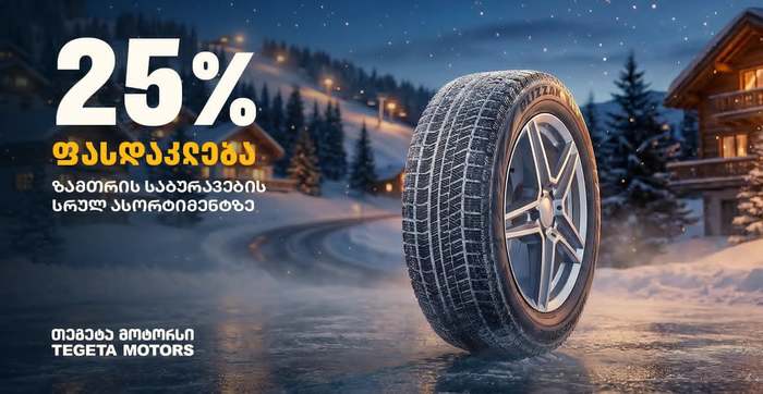 გადააგორე ზამთარი — შეცვალე საბურავი თეგეტა მოტორსში და ისარგებლე 25%-იანი ფასდაკლებით