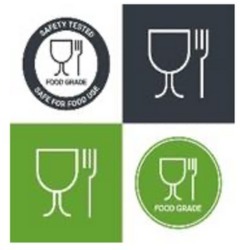 საჭმელთან კონტაქტისთვის უსაფრთხო სიმბოლო (ჭიქა და ჩანგალი): ეს სიმბოლო აღნიშნავს, რომ შესაფუთი მასალები უსაფრთხოა საკვებთან კონტაქტისთვის ანუ ისინი აკმაყოფილებს რეგულაციების მოთხოვნებს და არ გამოყოფს მავნე ნივთიერებებს.