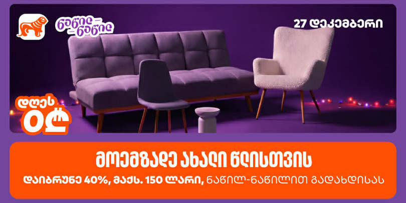 შეთავაზების ფარგლებში, 27 დეკემბერს, ის მომხმარებლები, რომლებიც საქართველოს ბანკის ნაწილ-ნაწილ გადახდით ისარგებლებენ, JYSK-ში შოპინგისას 40%-იან ქეშბექს მიიღებენ. (მაქსიმუმ 150 ლარი).