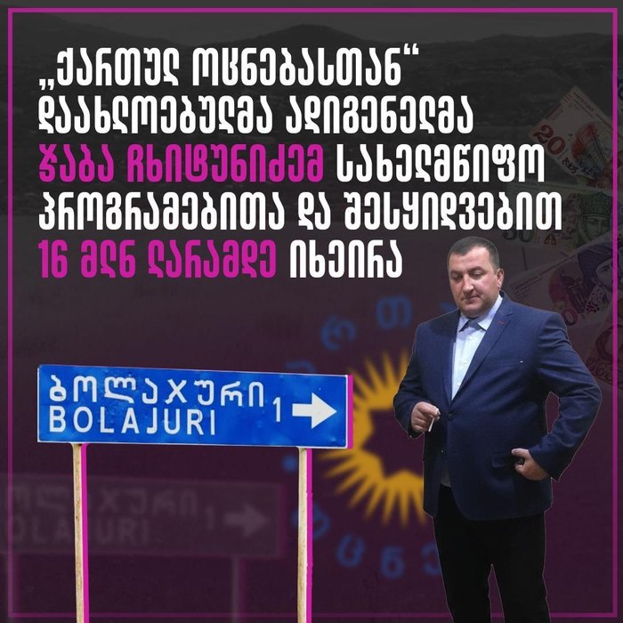 საერთაშორისო გამჭვირვალობა — საქართველო (TI) სტატიას აქვეყნებს სადაც აღნიშნულია, რომ ადიგენში, სოფელ ბოლაჯურის მკვიდრმა, ჯაბა ჩხიტუნიძემ, რომელიც 2012 წელს, ძმასთან ერთად, საკუთარ სოფელში საკუთარ სახლში გახსნილ ქართული ოცნების ოფისს ხელმძღვანელობდა შესყიდვებით და სახელმწიფო პროგრამებით 16 მილიონ ლარამდე იხეირა.