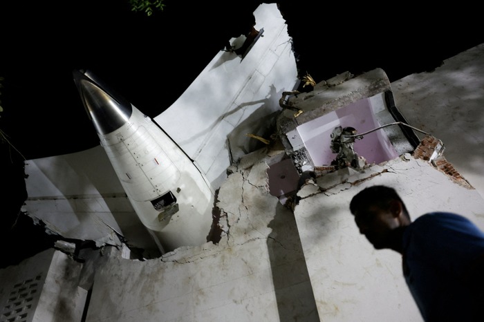 Air India-ს თვითმფრინავის ვიაკატასტროფის ადგილი, რომელიც ლონდონის გატვიკის აეროპორტისკენ მიფრინავდა და აფრენის დროს ჩამოვარდა — აჰმედაბადის აეროპორტი, ინდოეთი, 2025 წლის 12 ივნისი.