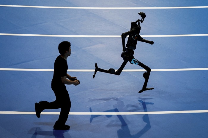 Unitree Robotics-ის ჰუმანოიდი რობოტი მონაწილეობს 400-მეტრიან გარბენში ჰუმანოიდი რობოტების მსოფლიო თამაშების პირველ გამოშვებაზე — პეკინი, ჩინეთი, 2025 წლის 15 აგვისტო.
